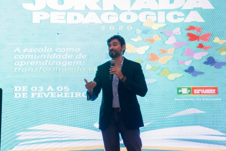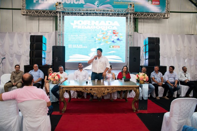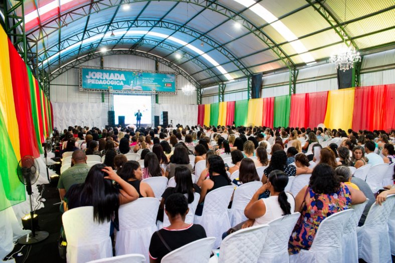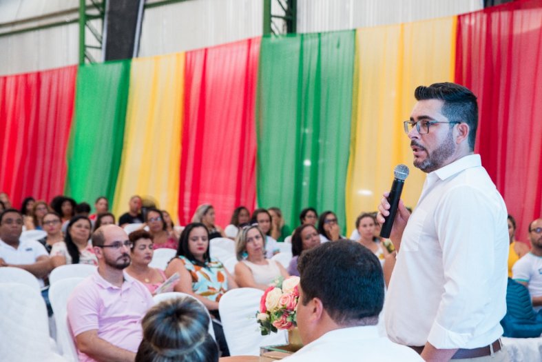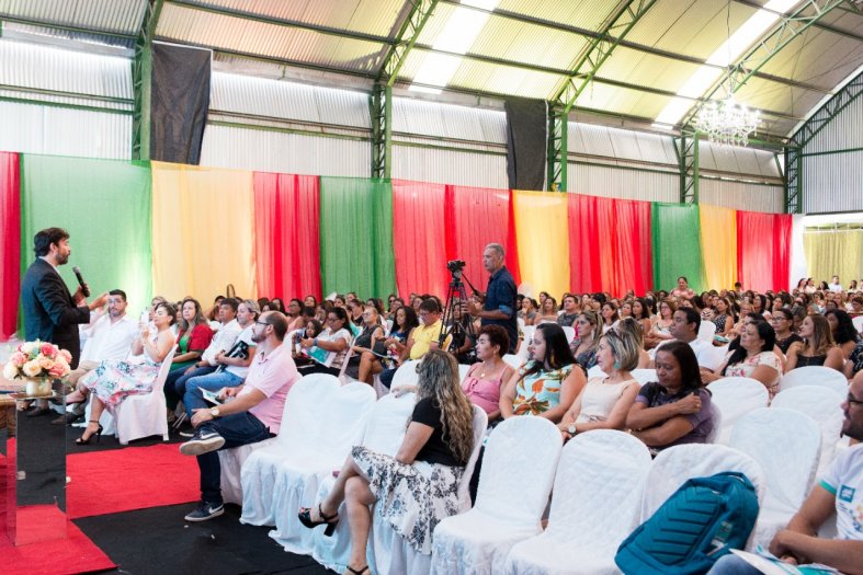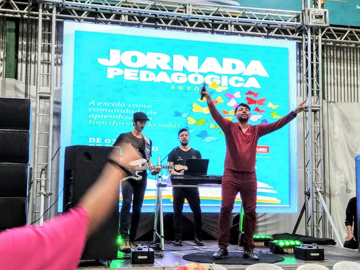 Abertura da Semana Pedagógica contou com a palestra de Kau Mascarenhas, homenagem à professora e ex-secretária Fabíola Bastos e boas vindas a Marcelo Cardoso (novo secretário da Educação), além de jantar e show musical com Rodrigão. A programação deste ano está voltada à promoção do bem-estar social dos profissionais da educação.