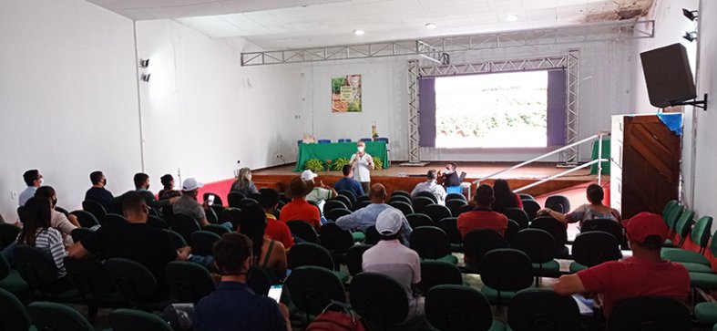 Produção de feijão-comum, manejo sustentável da mosca branca e o combate ao vírus do mosaico dourado foram os três temas principais de uma palestra capacitante realizada nesta terça-feira para produtores de grãos de Euclides da Cunha. Organizada pela Secretaria de Agricultura, em parceria com o Sebrae e Embrapa, a palestra teve a ilustre presença do Dr. Luís Claudio de Faria, mestre em agronomia e doutor em genética e melhoramento de plantas. A plateia, limitada a 50 pessoas, contou com a presença de produtores, estudantes de agronomia e técnicos.